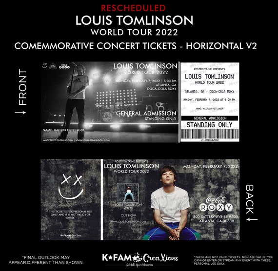 Louis Tomlinson World Tour 2022 Commemorative Concert Tickets Etsy