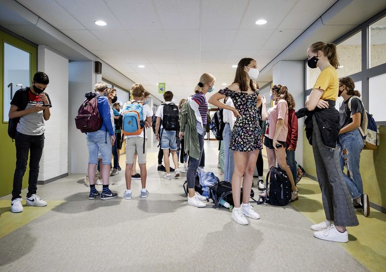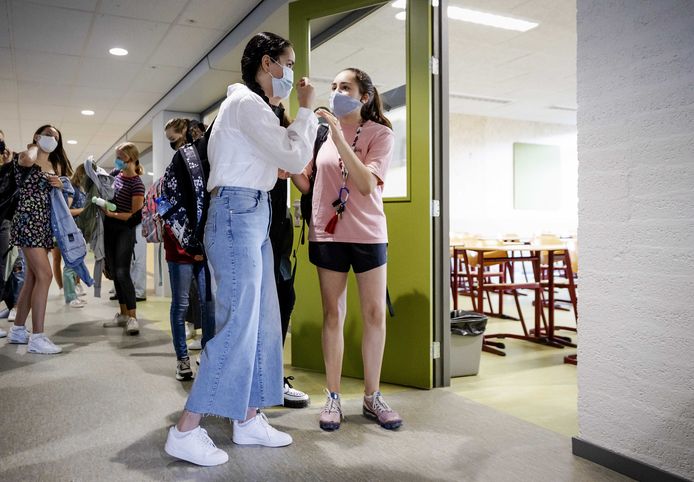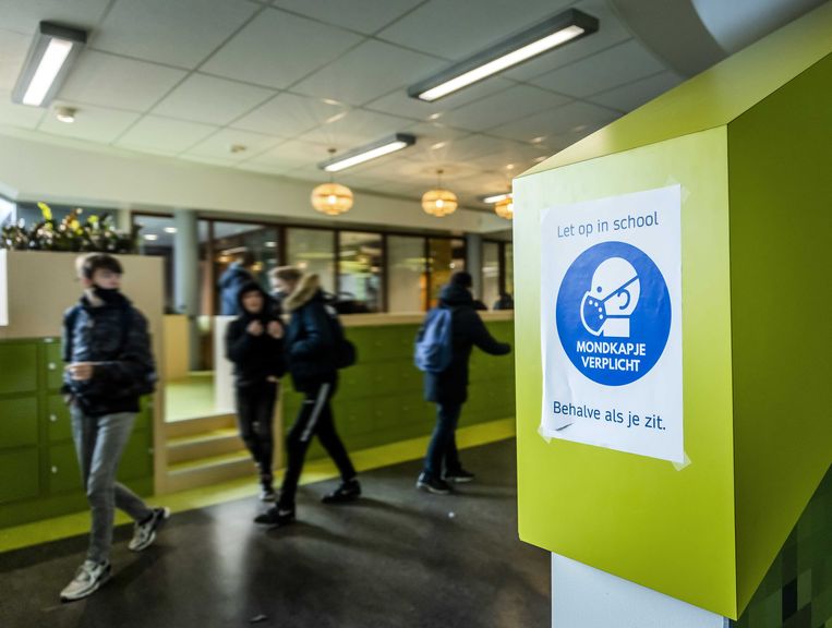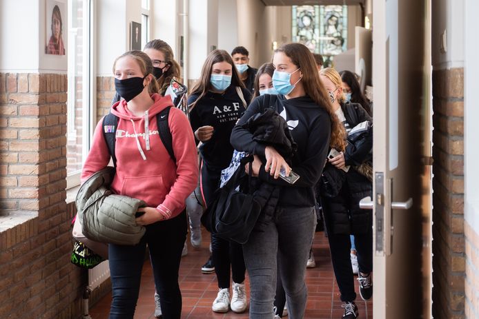 Dat schrijft voor dat leerlingen en leerkrachten in de gangen van de scholen verplicht zijn een mondkapje te dragen.